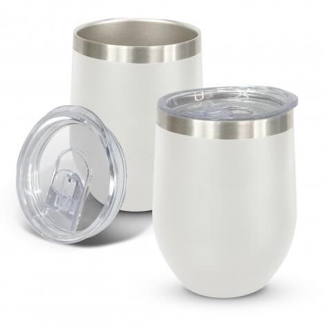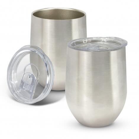 Smart 300ml double wall, vacuum insulated stainless steel coffee cup with a timeless curved design and a stunning powder coated finish. It will keep drinks hot or cold for hours and has a transparent push on lid with a sliding closure. Cordia laser engraves to a shiny steel finish. The silver cup does not have a powder coating and laser engraves to a natural etch. The cup is BPA-free and is presented in a black gift box. This product is not dishwasher safe and handwashing is recommended.